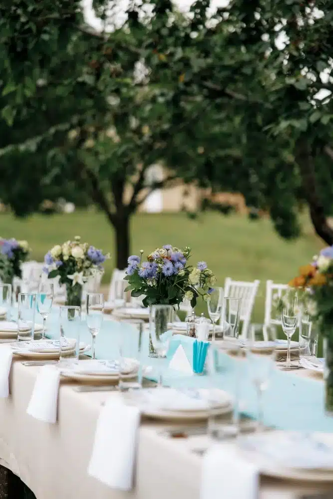 Linens, china, glassware and flatware to complete the guest experience.